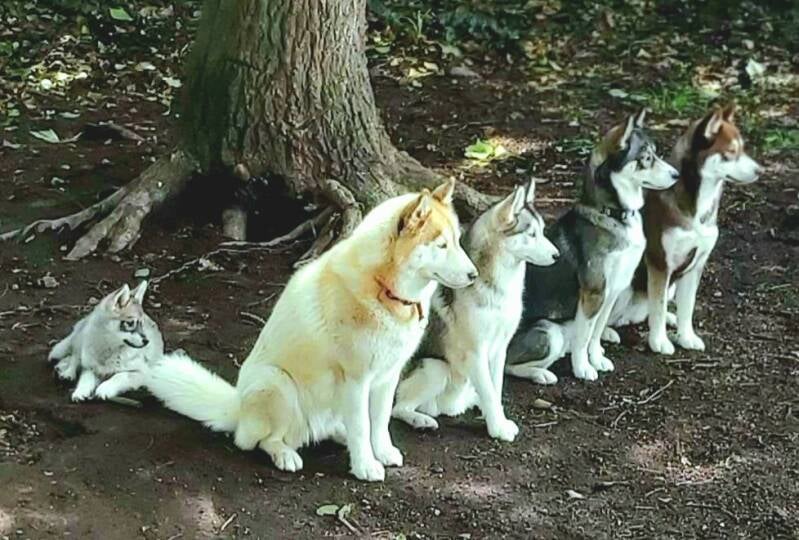 Sa queue en brosse bien fournie, voir touffue est portée enroulée sur le dos, voir droite selon sa posture et son attitude, évoquant son hérédité nordique.